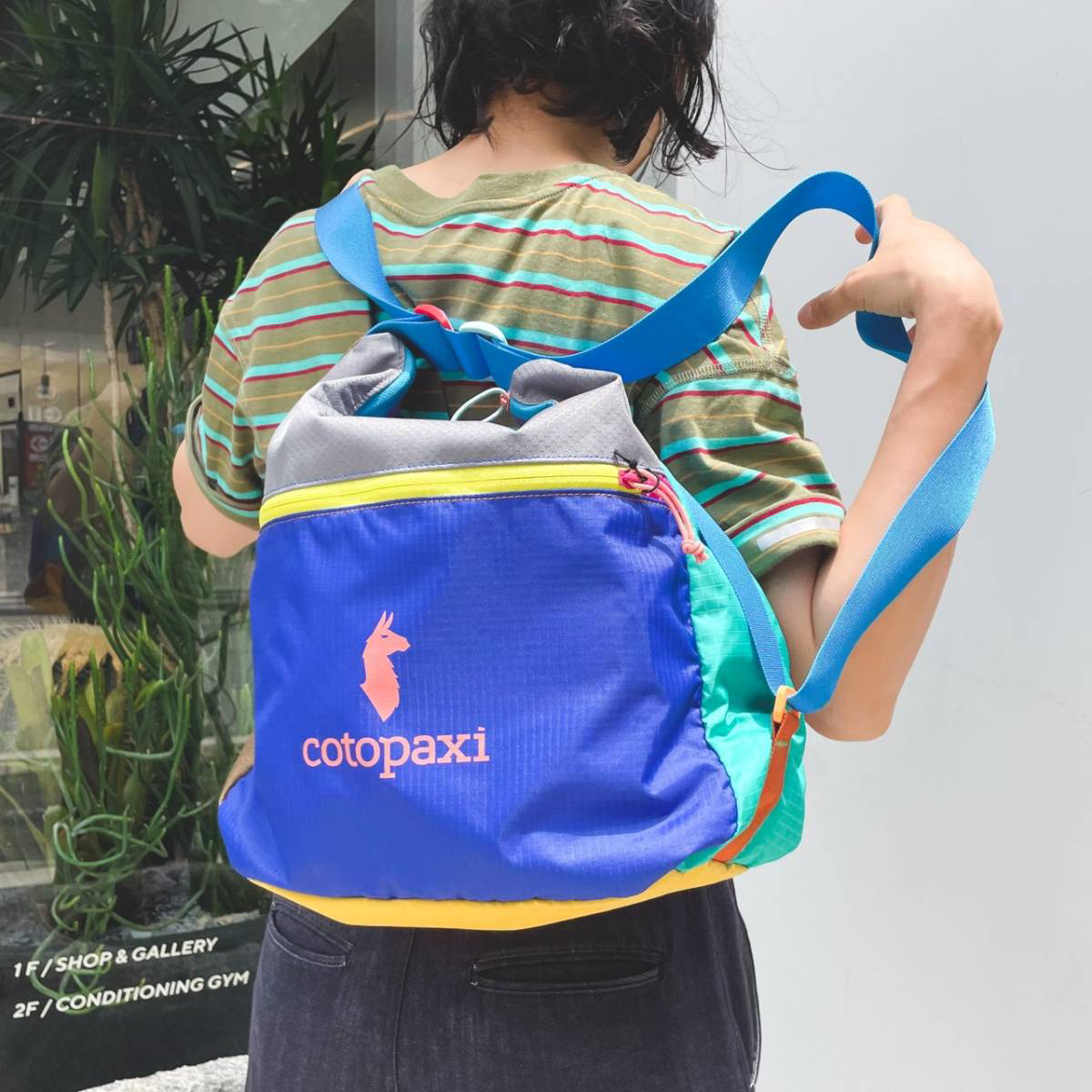 メッセンジャーバッグのように斜めがけでも、両側のストラップを伸ばせばバックパックのようにもなる2wayです!