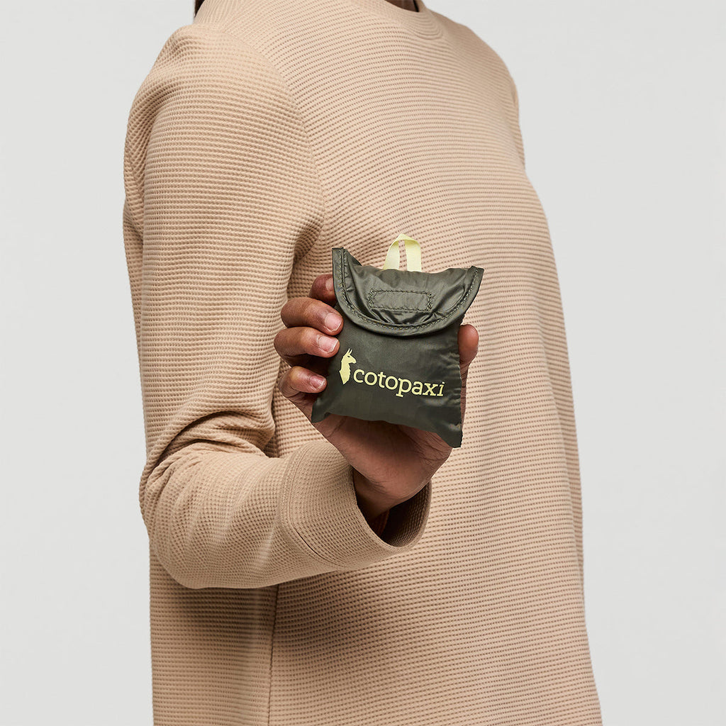 100%リサイクル素材で作られたこのレインカバーは、15~25Lの小型パックにフィットします。