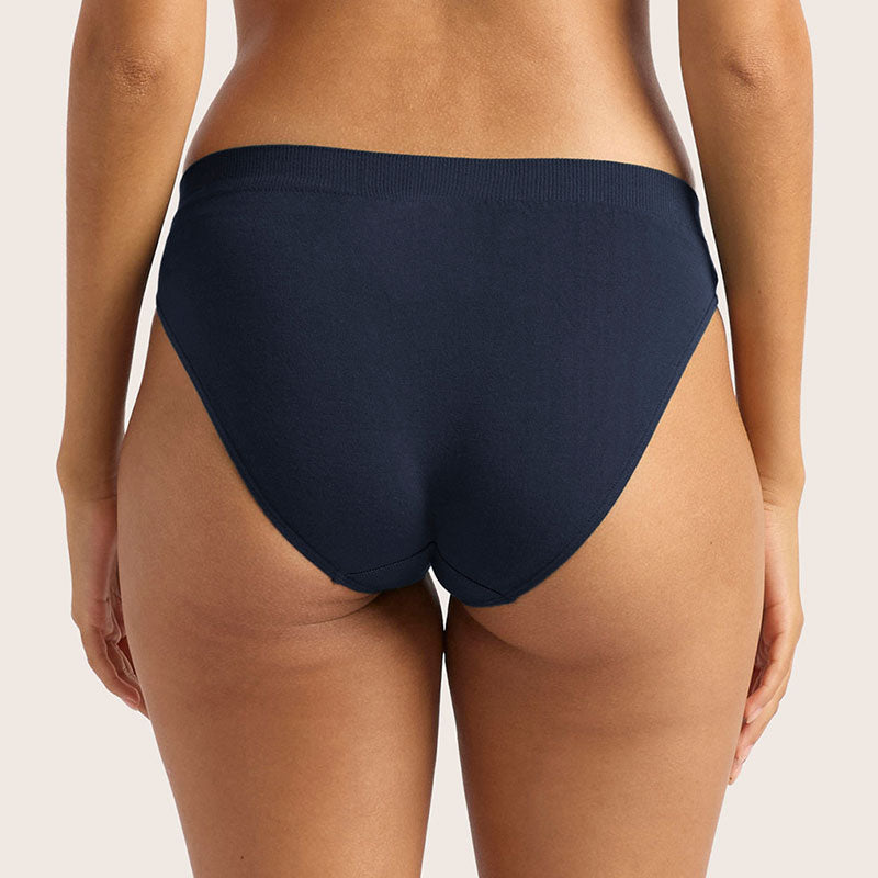 たまには心躍るようなフリル付きのデザインもいいけど、普段使いには、このクラシックビキニを。締め付けないミッドライズのウエストバンドをシームレスに仕上げ、こだわりのフィット感を実現。全ての体型・サイズに対応。ズレたりめくれたりせず、洗濯しやすいのもポイント。一年を通して快適な着け心地で、環境にも優しいベストセラー。