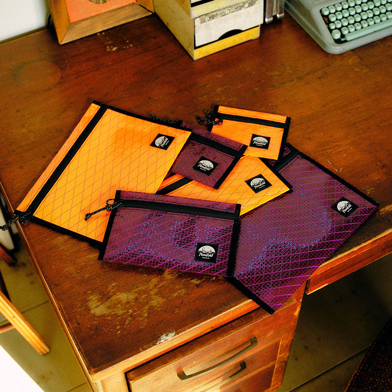 超軽量で耐水性のあるSailcloth with X-Ply®を再利用した、ジッパーポーチ。他にはない、色鮮やかで環境に優しいポーチです。必需品を液体漏れや汚れ・摩擦から守ります。